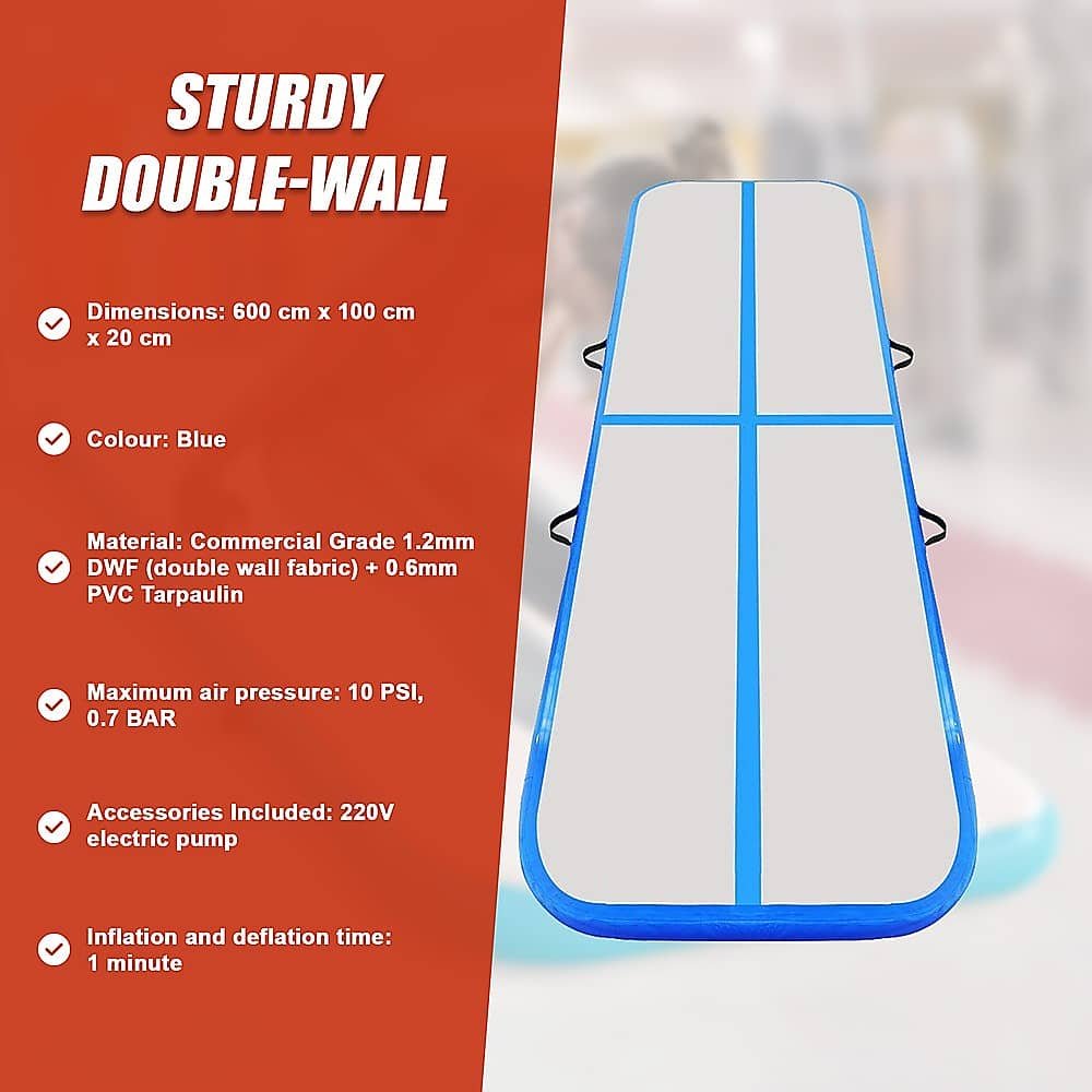 Whether you need a soft, forgiving gym mat to train for gymnastics, yoga, or another sportor you just want a soft spot to hang out on the floor while you watch TV or picnic outside, this inflatable gym mat from Randy Travis Machinery must make your wish list this year. Crafted from sturdy double-wall drop-stitch material and tough commercial-grade PVC tarpaulin with reinforced seams, this mat is built to last.