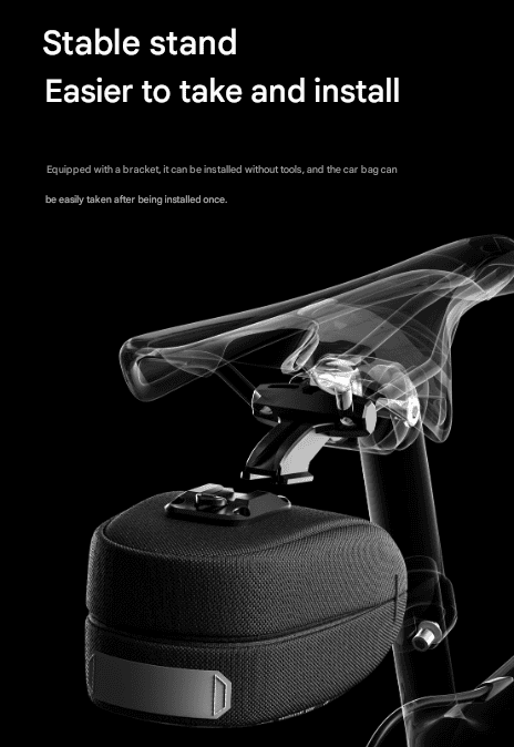 • Quick-Release Mounting System: Features a sturdy mounting bracket that attaches to your saddle rails. The bag itself can then be quickly and easily attached or detached from the bracket, often tool-free once the bracket is installed.