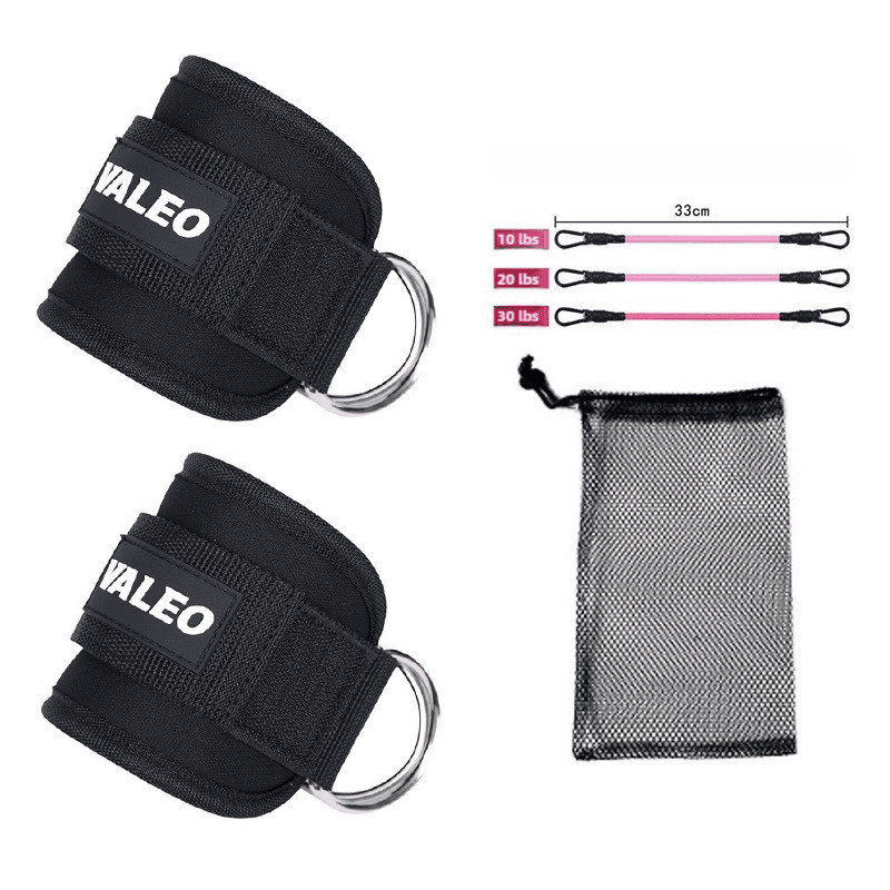 Black Set (2 Ankle Straps + 3 elastic ropes + 1 mesh bag) Adjustable Ankle Straps for Leg and Glute Training - EVA Padded Gym Foot StrapsBlack Set (2 Ankle Straps + 3 elastic ropes + 1 mesh bag) Adjustable Ankle Straps for Leg and Glute Training – EVA Padded Gym Foot Straps