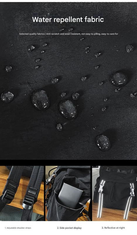 Crafted from high-quality, durable nylon fabric, this backpack boasts a water-repellent finish to protect your belongings from light rain and splashes. It’s also anti-scratch, wear-resistant, and easy to keep clean, ensuring it looks great trip after trip.
