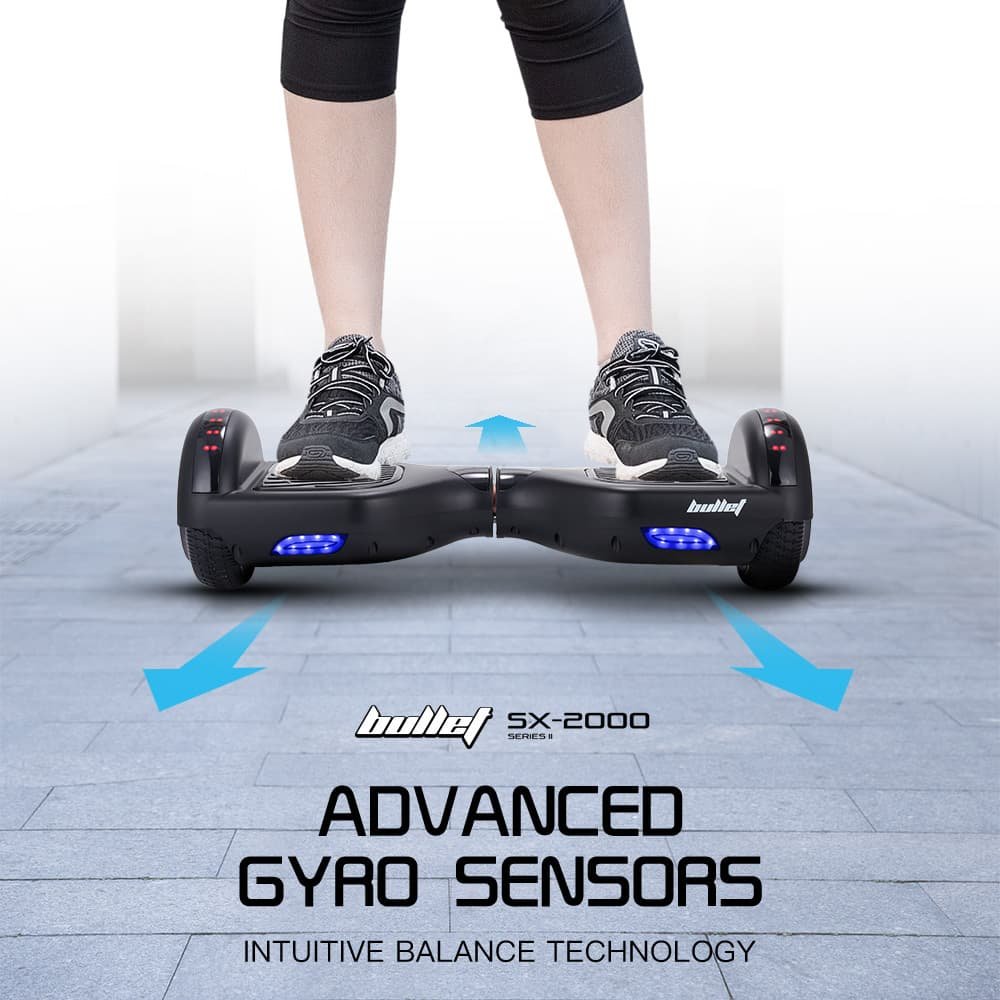 Experience a next level hoverboard with the state-of-the-art Bullet SX-2000. Its high-speed chipset reacts instantly to your bodys movements, offering highly responsive acceleration, turning, and reversing.