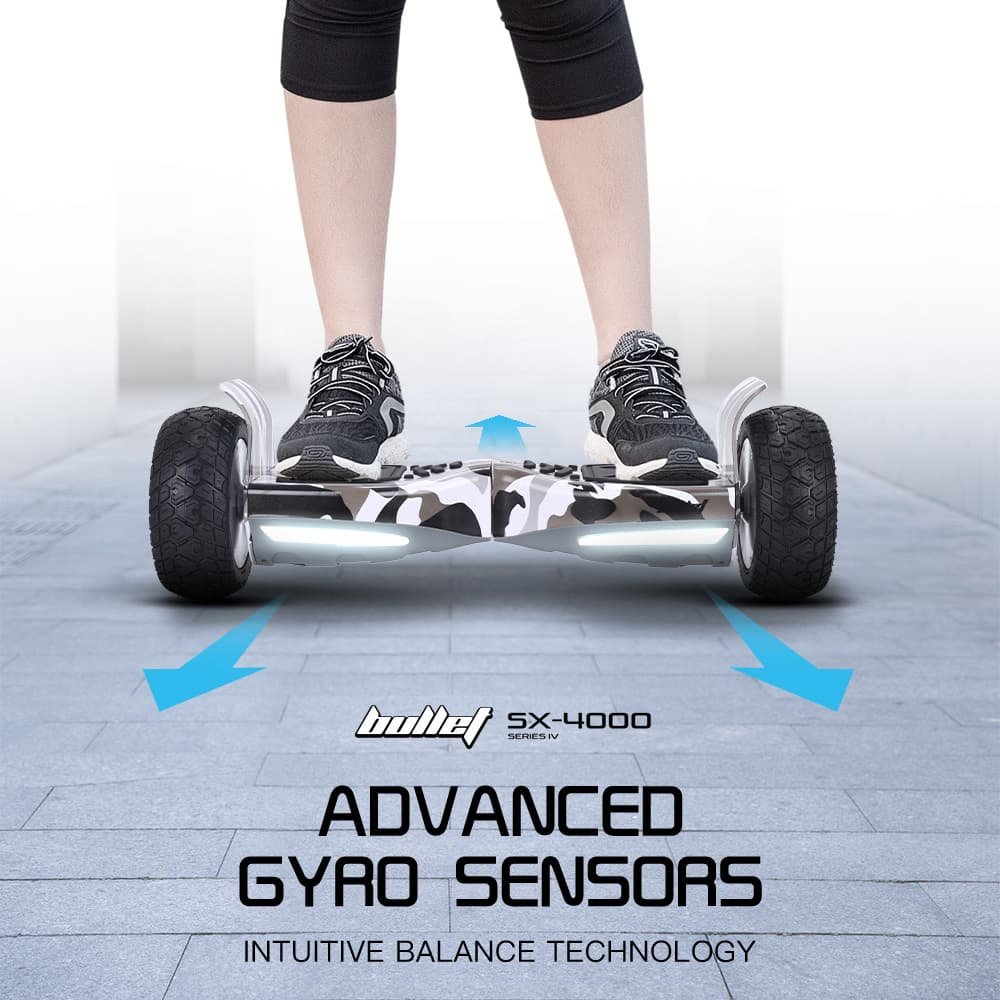 Experience a next level hoverboard with the state-of-the-art Bullet SX-4000. Its high-speed chipset reacts instantly to your bodys movements, offering highly responsive acceleration, turning, and reversing.