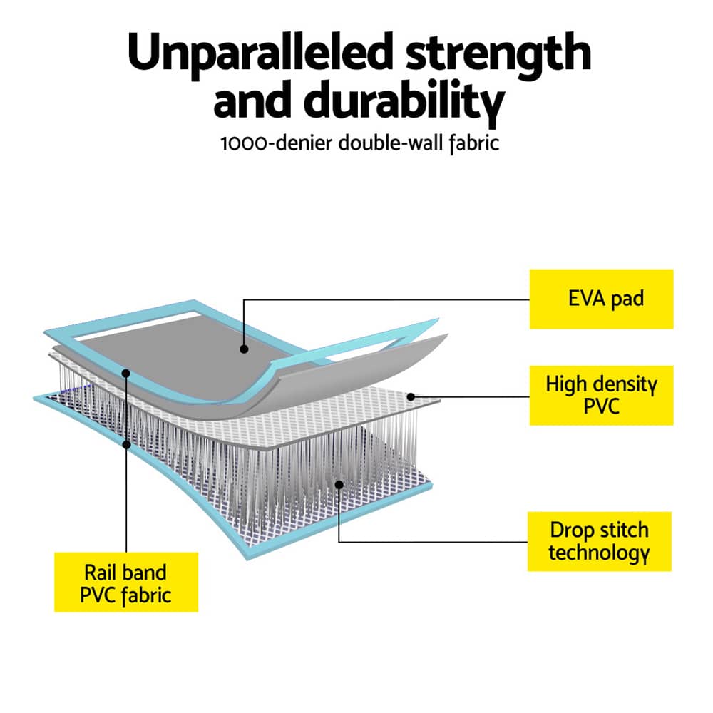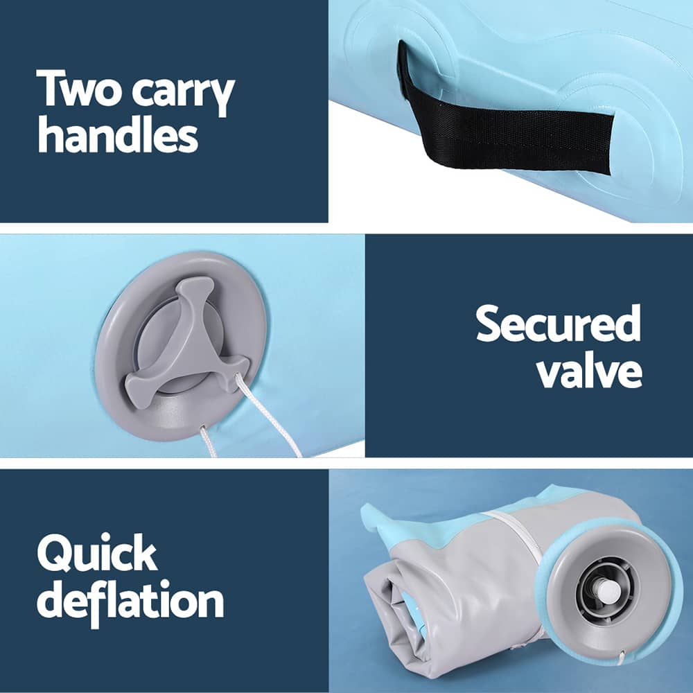 For hours of jumping, fighting and tumbling fun, the Everfit Air Track is a great addition to your home gym. Perfect for gymnastics, martial arts, yoga, cheerleading and more, the 1m air track is a versatile and essential tool for your training regime. Crafted with drop-stitched 1000-denier double-wall fabric, the Everfit air track ensures durability and stability during intense workouts. Softer than foam and designed for robust use, the air track won’t twist or bend and helps to significantly reduce impact. Its anti-slip and wear-resistant surface provides a secure grip, allowing you to perform your moves with confidence. The integrated valve system allows for quick and easy inflation and deflation, while the compact roll-up design makes storage and transport a breeze. With two convenient carrying handles and a repair kit included, the Everfit 1m Air Track is the perfect choice for athletes seeking a reliable and portable training solution.