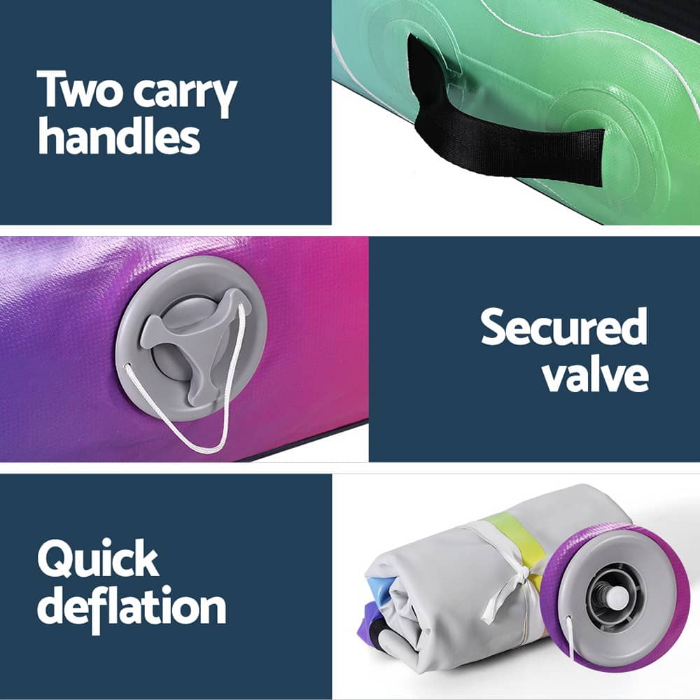 For hours of jumping, fighting and tumbling fun, the Everfit Air Track with pump is a great addition to your home gym. Perfect for gymnastics, martial arts, yoga, cheerleading and more, the 1m air track is a versatile and essential tool for your training regime. Crafted with drop-stitched 1000-denier double-wall fabric, the Everfit air track ensures durability and stability during intense workouts. Softer than foam and designed for robust use, the air track won’t twist or bend and helps to significantly reduce impact. Its anti-slip and wear-resistant surface provides a secure grip, allowing you to perform your moves with confidence. The integrated valve system allows for quick and easy inflation and deflation, while the compact roll-up design makes storage and transport a breeze. With two convenient carrying handles and a repair kit included, the Everfit 1m Air Track is the perfect choice for athletes seeking a reliable and portable training solution.
