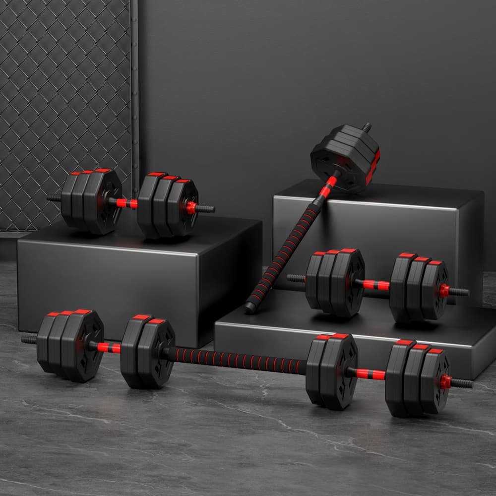 The Everfit Dumbbell Set is a 4-in-1 adjustable barbell and dumbbell combo, offering versatile weight options in a compact design. Perfect for home gyms, this 40kg set includes durable weight plates and bars for strength training, cardio, and muscle toning. Ideal for fitness enthusiasts seeking a space-saving, all-in-one workout solution. (Safety Note: Never stack more than two weights near the Barbell Connector. The Barbell Connector is for connection only – not for load-bearing.)