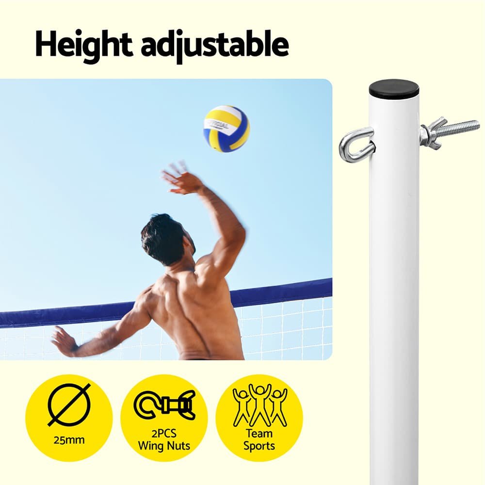The Everfit 6M Portable Volleyball Net Set delivers flexible outdoor fun for families and athletes. Featuring a UV-resistant PE mesh net and lightweight iron frame, this adjustable-height system transitions seamlessly between volleyball, badminton, and tennis. Its quick-assembly design ensures stable performance on grass, sand, or courts, while the compact carry bag simplifies storage and transport. Perfect for backyard games, beach outings, or camping trips, the set includes a durable PVC volleyball and reinforced Oxford fabric components built to withstand sun exposure and frequent use.