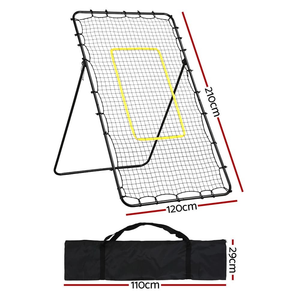 The Everfit 7ft Adjustable Rebounder Net offers dynamic training for football, baseball, and volleyball. Its angle-adjustable design adapts to drills or competitive play, while the UV-resistant PE mesh withstands intense sun and repeated impacts. The sturdy metal frame (25.4×1.0mm pipes) ensures stability on grass, sand, or concrete, and the quick-assembly system lets you switch between sports in minutes. Portable enough for beach trips or backyard practice, this multi-sport goal includes a compact carry bag for hassle-free transport. Perfect for solo training or group games!