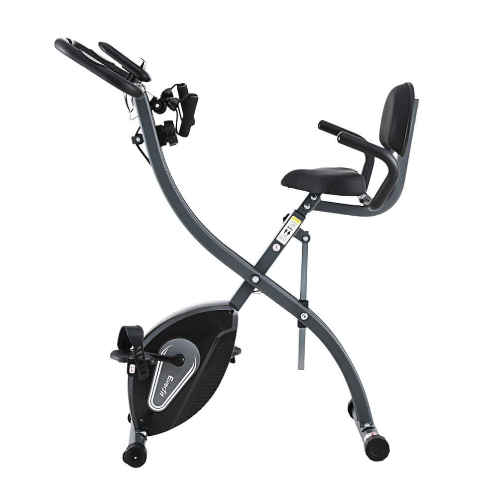 The Everfit Folding Exercise Bike is the perfect choice for those seeking an efficient and space-saving workout solution. Designed with a folding X-frame, it can be easily stored after use, making it ideal for small spaces. The bike offers 12 resistance levels, providing a customizable workout experience suitable for beginners and advanced users alike. It also features armrests and a backrest for added comfort, as well as exercise pulling ropes to enhance your upper body workout.