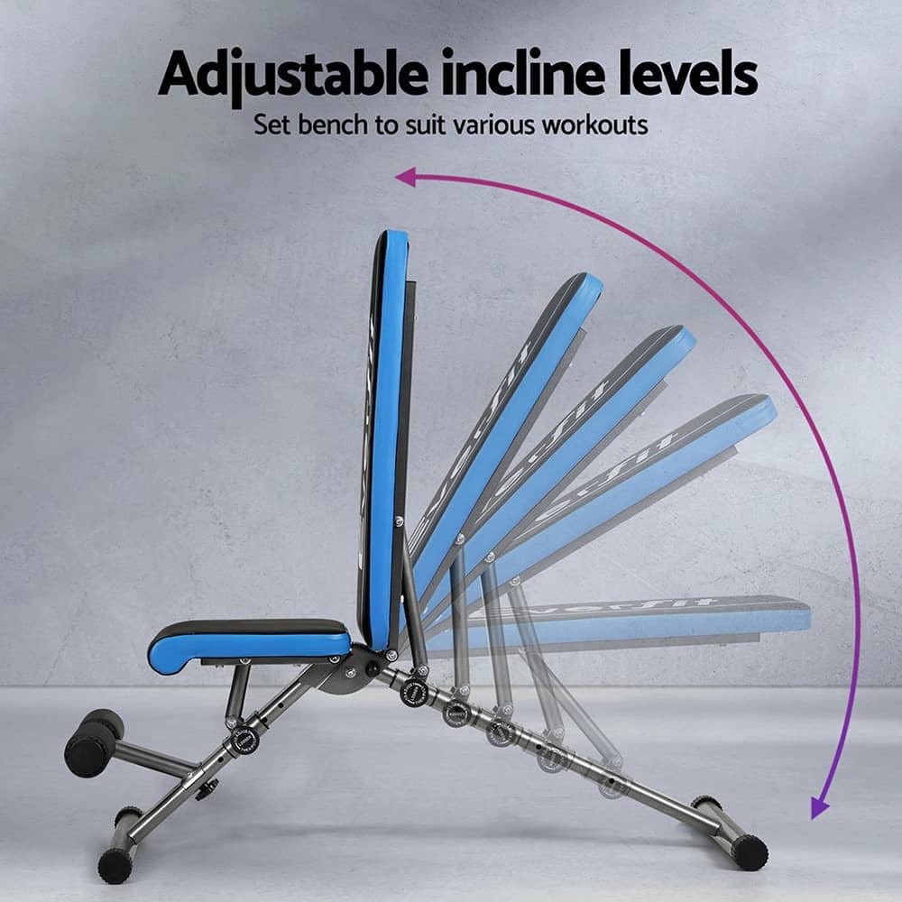 Power up your home workout with an Everfit FID Bench. A classic piece of workout equipment, these benches feature 6 adjustable backrest levels and 4 adjustable seat positions, offering plenty of flexibility for your fitness routine. Combine with dumbbells, barbells or other equipment for the full gym experience. Comfortable PU-leather foam keeps you comfortable as you exercise and gives that professional gym look and feel. The bench is made from quality heavy-duty steel and features unique trapezoid-shaped support, non-slip capped feet, and a 330kg weight capacity to feel safe and secure throughout the workout. Store away easily when not in use thanks to the convenient foldable design. With quick and easy assembly, youll be working out in no time thanks to the Everfit FID Bench.