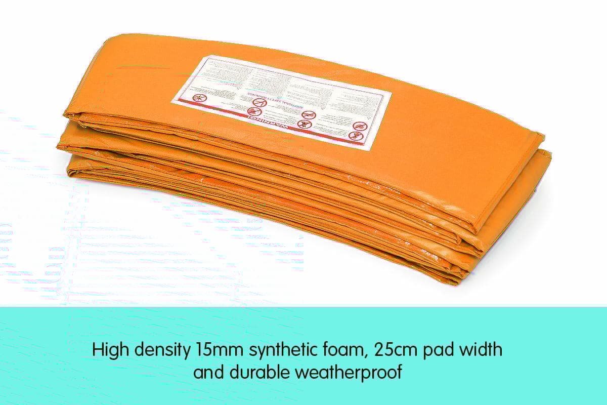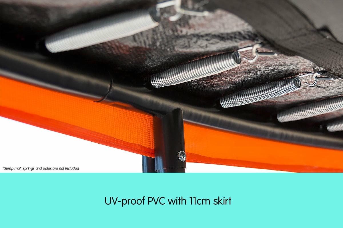 The pad is fitted with an 11cm PVC skirt which hangs down over the frame. This assists in locating the padding and also improves the appearance of the trampoline.
