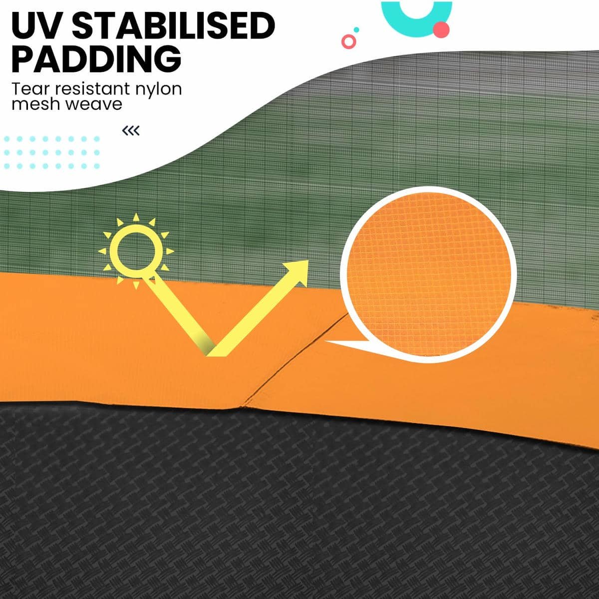 Suitable for both children and adults, this trampoline has many safety features, including a reinforced and UV-stabilised padding cover, an anti-graze mat and a weatherproof net enclosure to prevent falls.