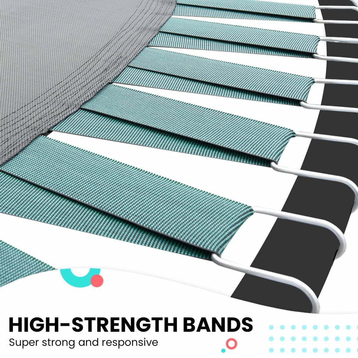 This springless trampoline also comes equipped with U-shaped legs and a ground anchoring kit to ensure stability and reduce the risk of the trampoline toppling over or sinking. Additionally, the Kahuna Twister Springless Trampoline has a hanging mesh compartment, a ladder and two pairs of anti-slip jumping socks for added safety.