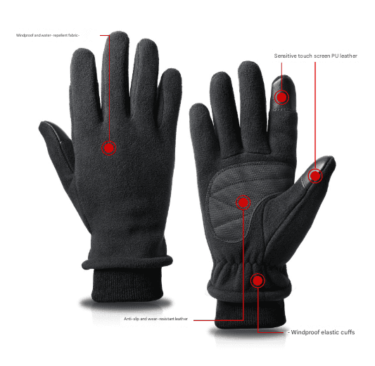 - Features: Thermal Warmth, Windproof, Touchscreen Compatible, Anti-Slip Grip, Elastic Cuffs