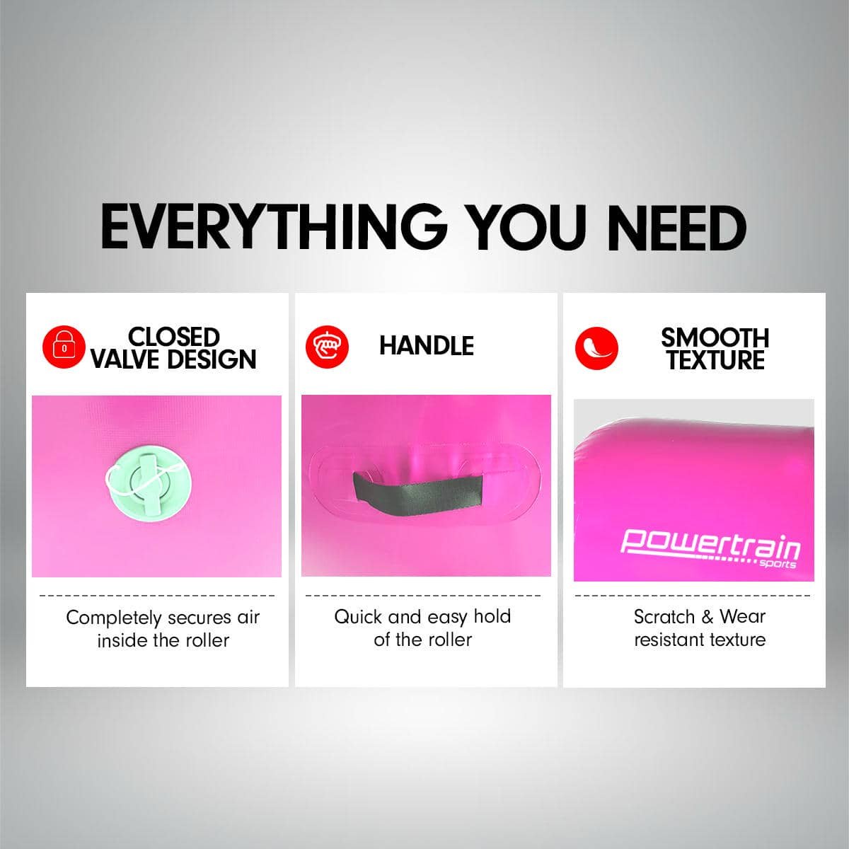 Powertrain Sports Inflatable Gymnastics Air Barrel Exercise Roller 120 x 75cm – Pink