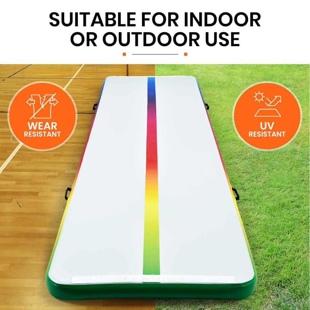 The Air Track has a wide range of applications and is essential for individuals and athletes in a variety of sports and recreations. With multiple size options you can tailor your experience for gym, dance, martial arts, fitness and more. Connect two mats with a velcro connector (not included) for a longer track for more complex routines.