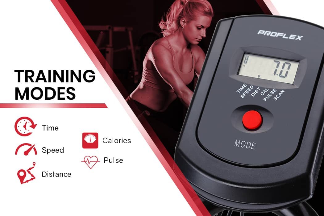 - Training Modes: Time, speed, distance, calories, pulse