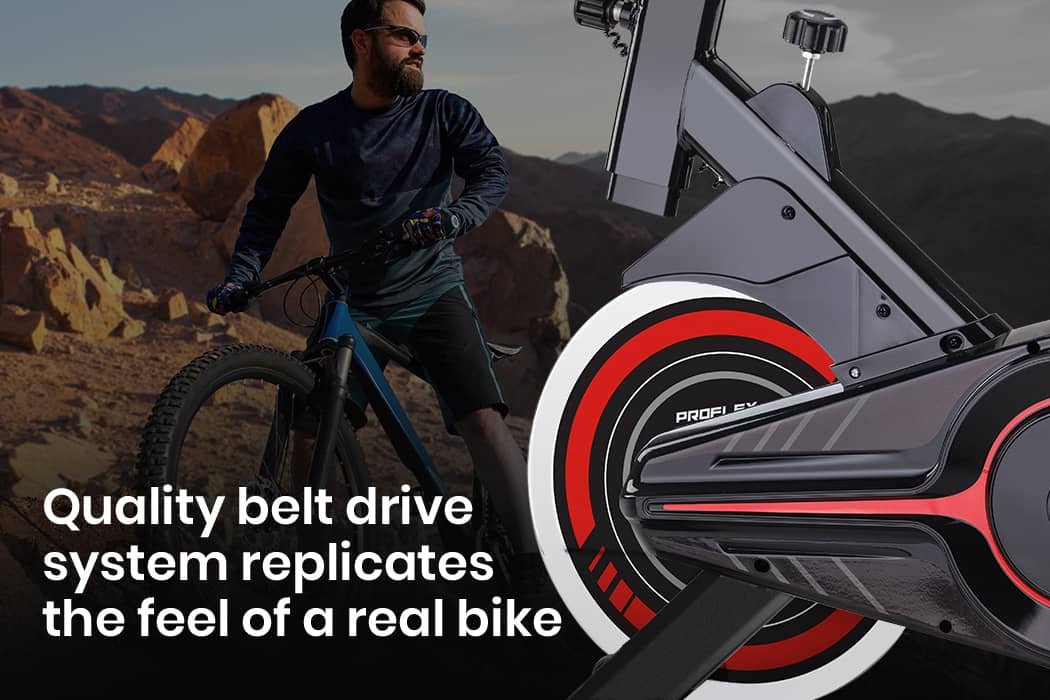 Comfort is essential to get the prolonged use out of fitness equipment that will see you reach your goals. For this reason, PROFLEX has prioritised ergonomics and comfort as core attributes for the SPN700. The seat, seatpost and handlebar are all adjustable to suit a range of users (check specifications before purchase). It features an extra-thick padded seat and secure gripped pedals with toe straps that provide an authentic feel and fluid pedal motion. Even its belt drive system acts to replicate the natural sensation of an on-road bicycle. All these inputs work in harmony to provide a best-of-breed spin bike that can be used all year long in any room of the house, meaning fitness goals can actually be reached, and then exceeded.