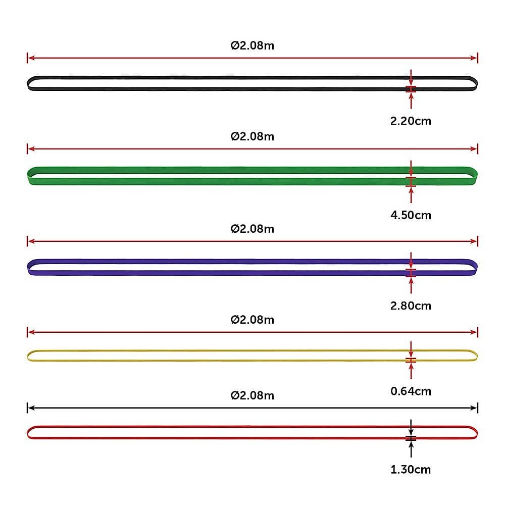 - Dimensions (Red): 208 x 0.45 x 1.30 cm, 15 to 35 pounds resistance
