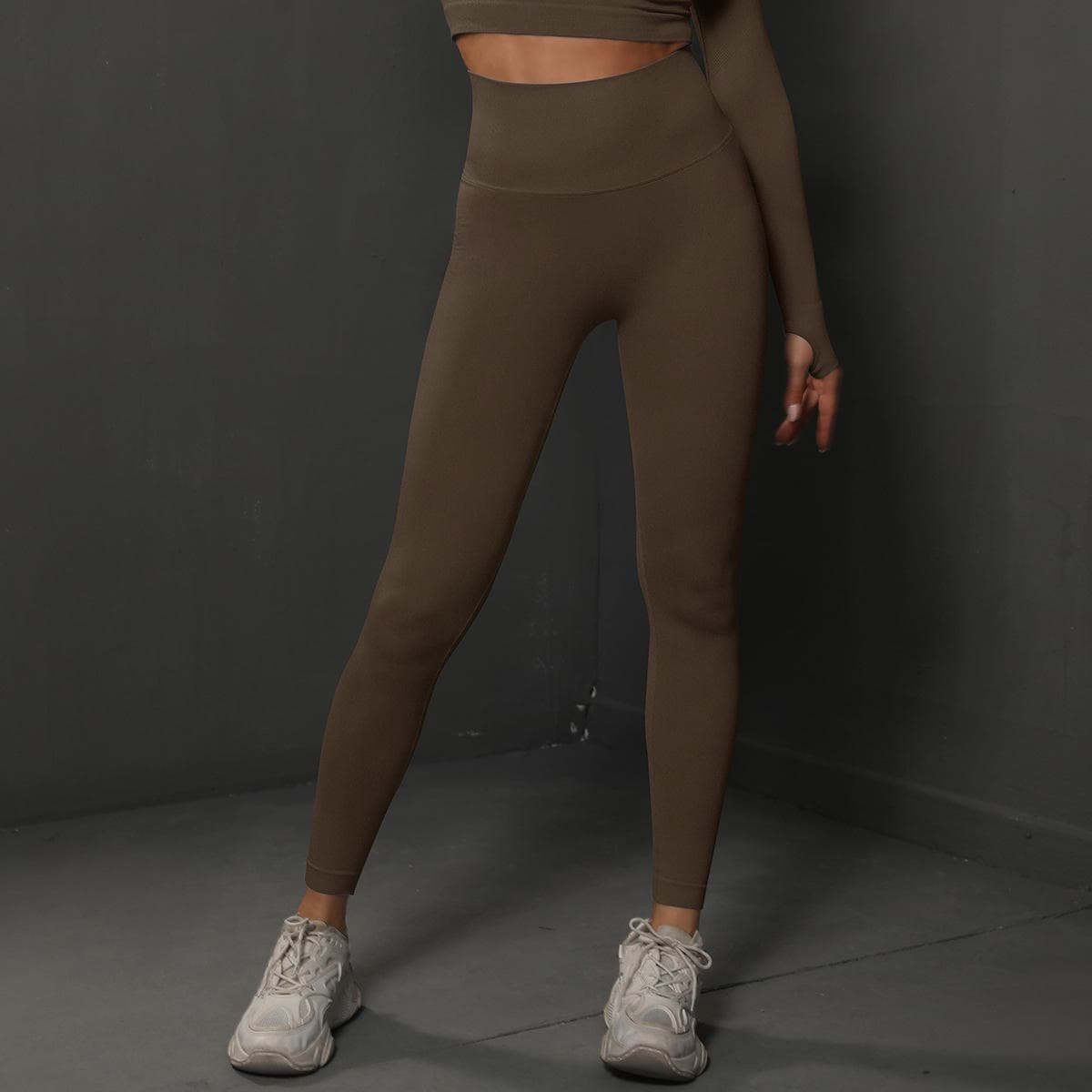 Size L Brown Seamless High-Waisted Yoga Pants for Women - Lift Workout Leggings for Running, Gym, and FitnessSize L Brown Seamless High-Waisted Yoga Pants for Women – Lift Workout Leggings for Running, Gym, and Fitness