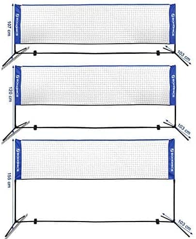 Suitable for many sports: The markings on the poles make it easy to adjust the height between 90cm and 155cm. This net is suitable for badminton, beach volleyball and tennis