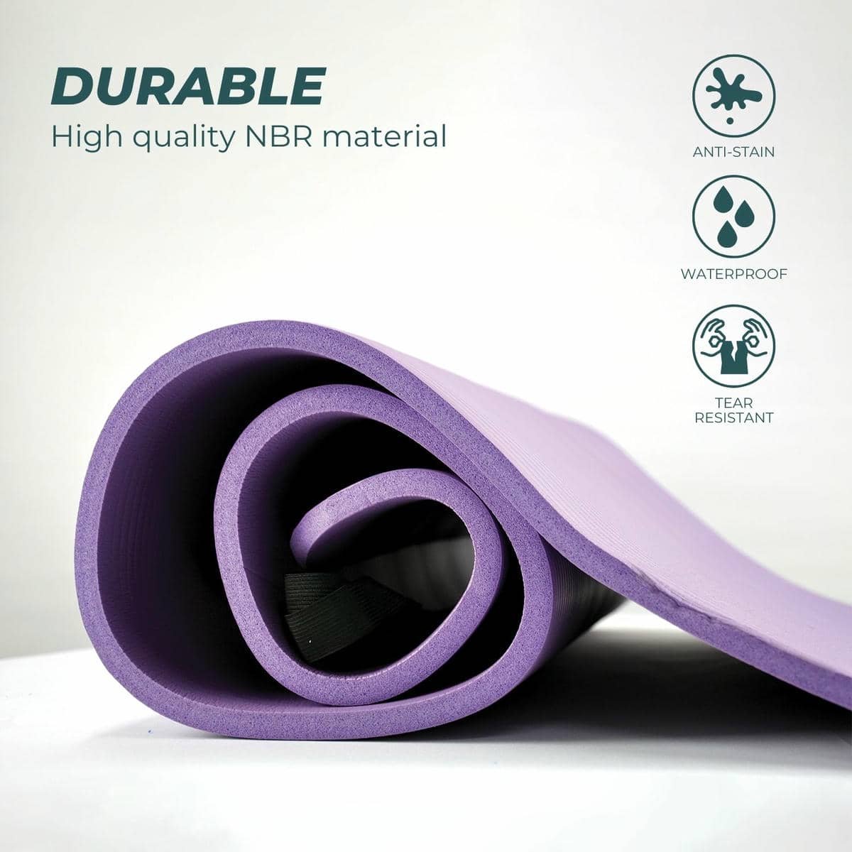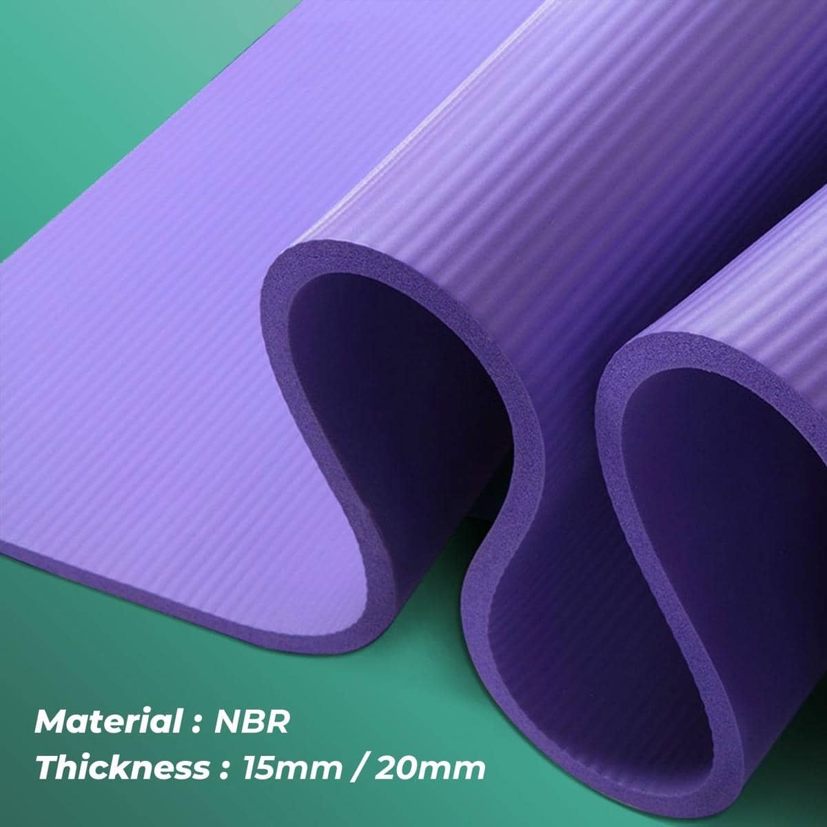 Our Yoga Mat Features double sided non-slip surfaces that help prevent injuries. The mat features specially designed comfortable High-density rubber, offers great impact absorption. Thick enough to protect your back, arms, knees and joints, while still allowing you to grip the floor for balance, its non-skid ridges will ensure that the mat never slips during use. Offers exceptional resilience helps you to keep your balance during any exercise. Moisture resistant technology allows the mat to be easily washed with soap and water. Easy strapping and light weight feature are added to this mat for easy transport and storage.
