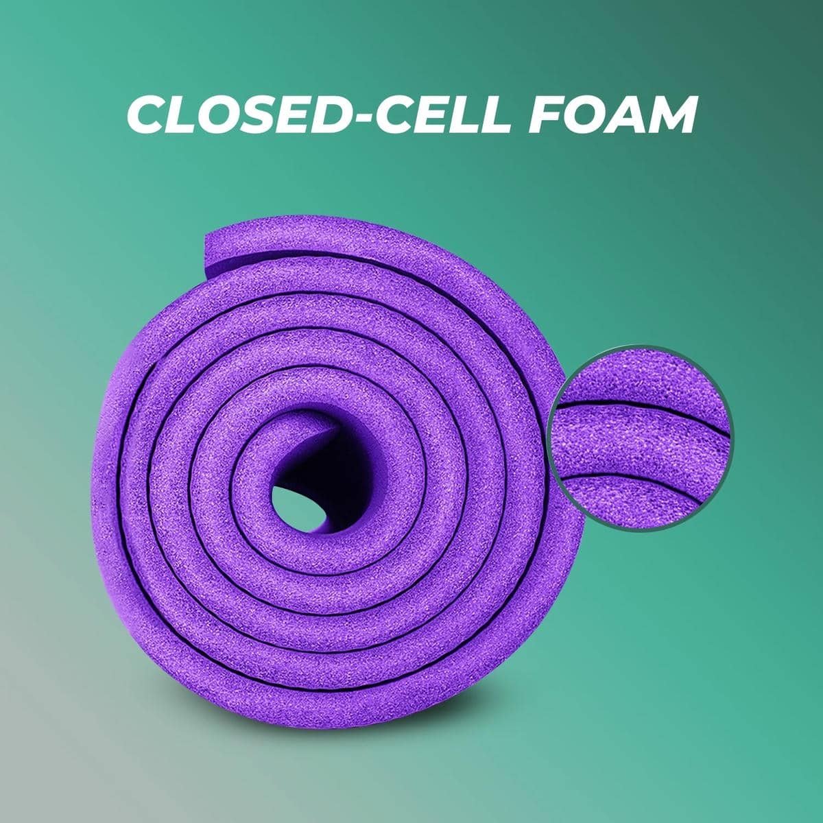 Our Yoga Mat Features double sided non-slip surfaces that help prevent injuries. The mat features specially designed comfortable High-density rubber, offers great impact absorption. Thick enough to protect your back, arms, knees and joints, while still allowing you to grip the floor for balance, its non-skid ridges will ensure that the mat never slips during use. Offers exceptional resilience helps you to keep your balance during any exercise. Moisture resistant technology allows the mat to be easily washed with soap and water. Easy strapping and light weight feature are added to this mat for easy transport and storage.