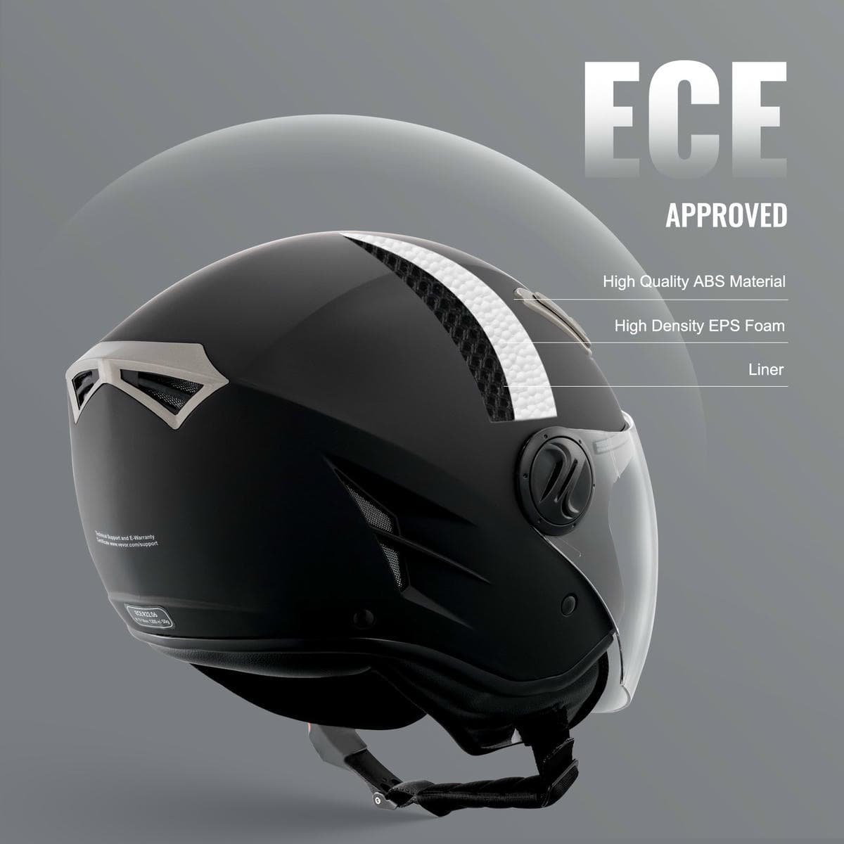 This motorcycle helmet is ECE certified and meets the US regulatory requirements. Its sturdy ABS shell combined with soft EPS foam and skin-friendly lining provides all-around safeguard for your head.