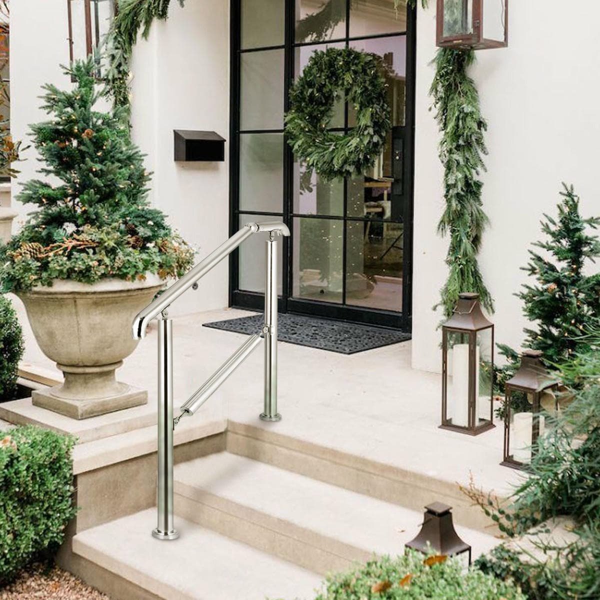 The stair railing is a must-have for your family with reliable performance. It can be installed on concrete, brick, and wood steps of porches, balconies, gardens, residential buildings, hotels, garages, etc. This stainless steel step railing is ideal for places you cannot attach to a wall or structure.