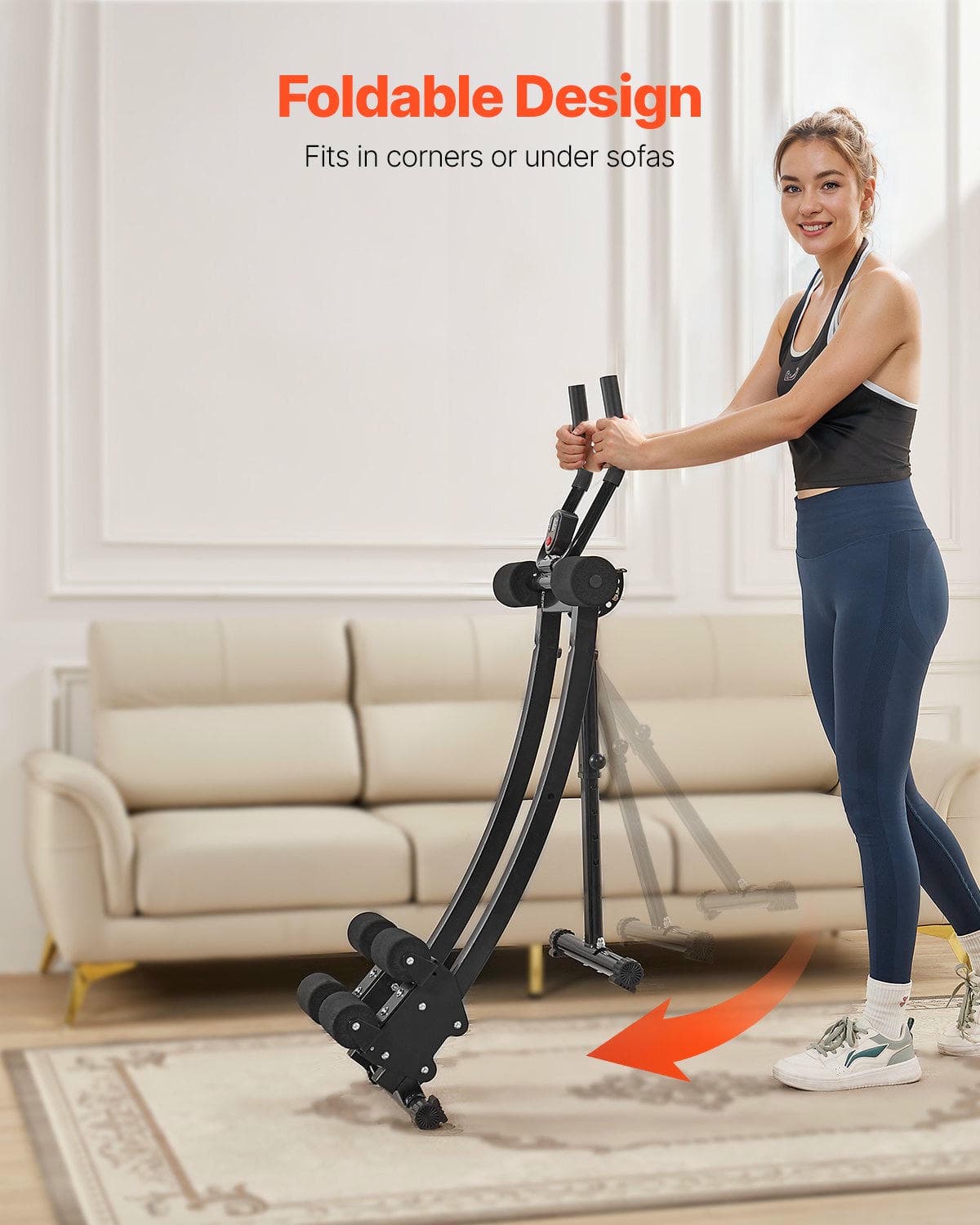 This ab workout machine features an ergonomic dual curved sliding track, increasing effective sliding distance. The fixed motion trajectory effectively enhances abdominal muscle engagement while reducing pressure on the back and neck. The separate sliders engage more muscles-arms, shoulders, and glutes-for comprehensive training.