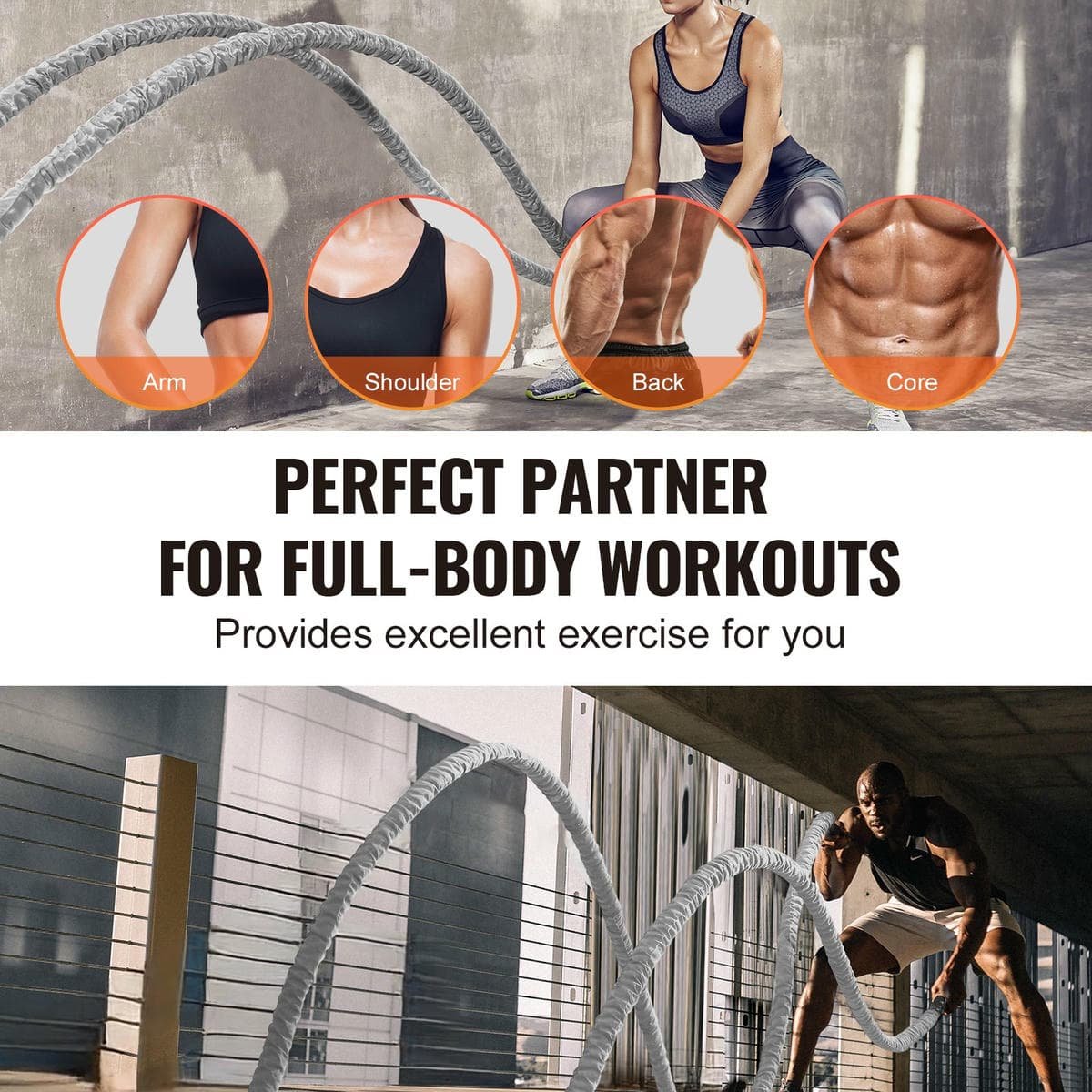 Suitable for various sports, improving training conditions and overall strength. Additionally, workout exercise training rope effectively targets abdominal muscles, arms, and shoulders, enhancing flexibility and coordination. It provides excellent exercise for boxers, swimmers, martial artists, as well as baseball, basketball, soccer, and tennis players.