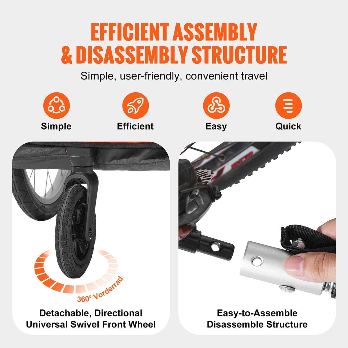No sweat assembly or disassembly with our kids bike trailer’s quick-release design, saving you time and effort for a more convenient journey. Get on the road faster and enjoy hassle-free adventures.