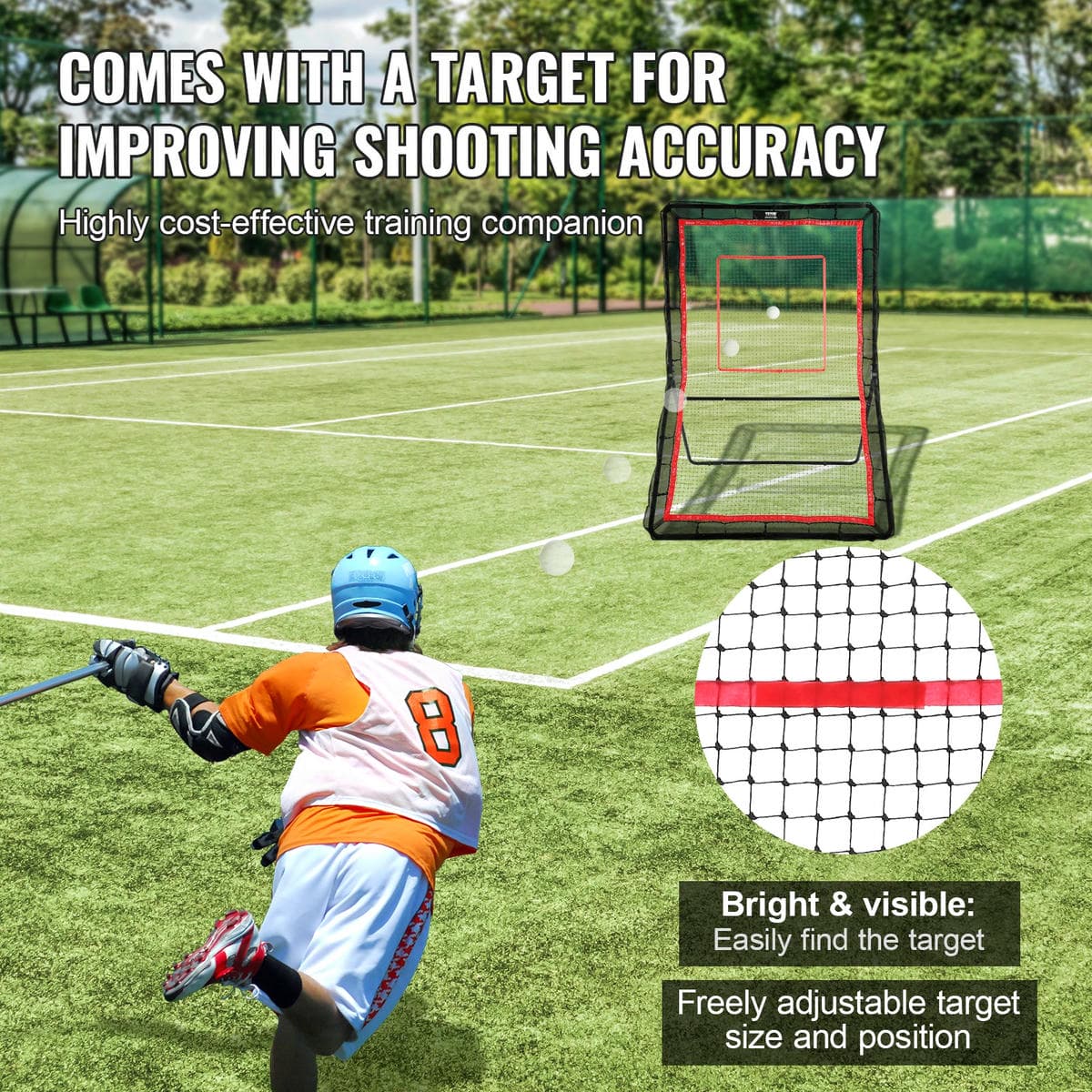With an ergonomic design offering 5 adjustable angles, you can set lacrosse bounce back net to the optimal angle and direction for your training. The large 5×7 feet net provides ample space, assisting in practicing various shooting and throwing techniques.