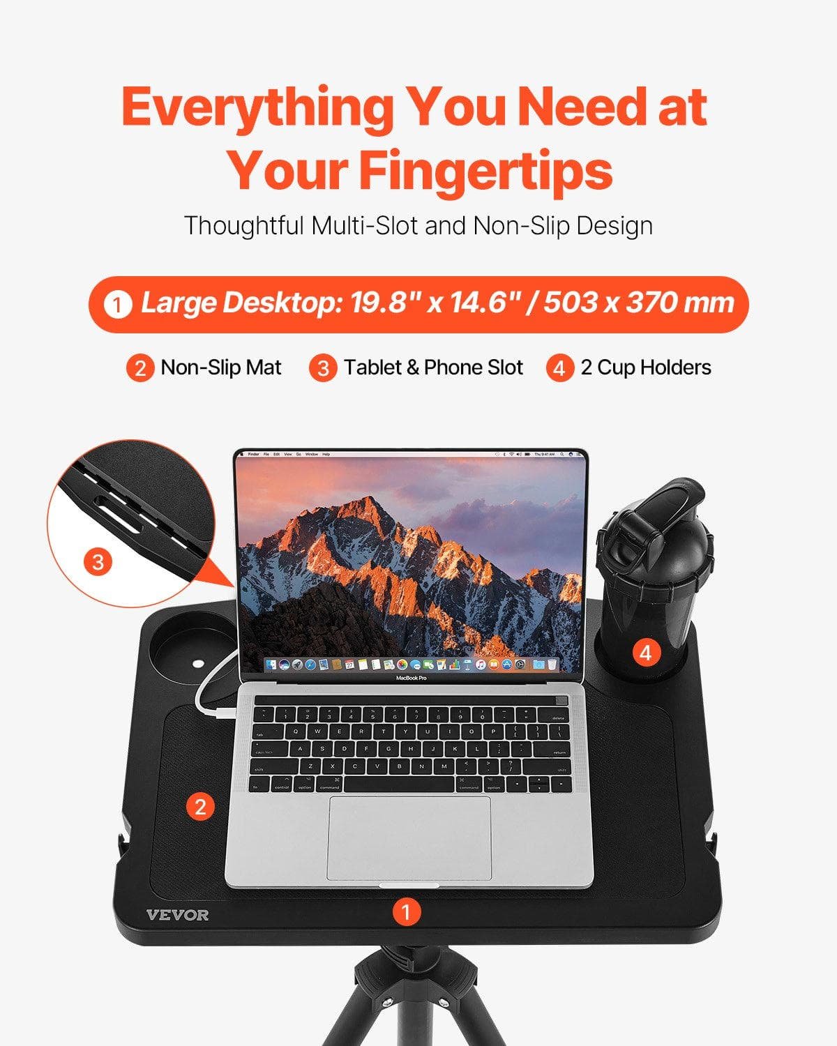 Even under pressure, the desk remains stable and will not tip forward. The desktop is made from durable ABS material, and the steel tube support structure, combined with the triangular foot design, ensures extra stability, security, and long-term durability during use.
