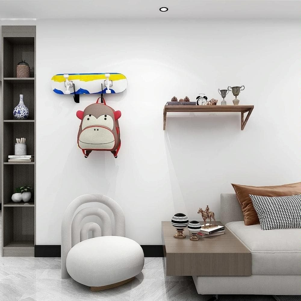 • The sturdy wall-mounted rack can accommodate most skateboards and longboards on the market